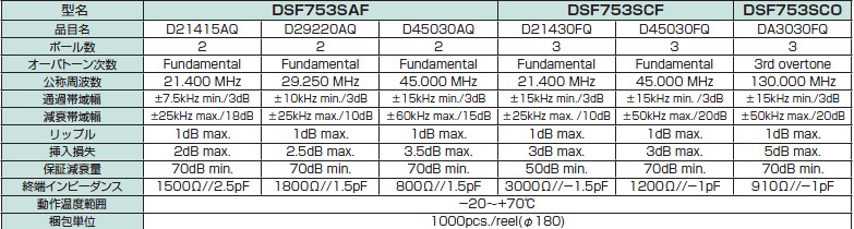 KDS貼片濾波器,聲表面濾波器DSF753S,對(duì)講機(jī)濾波器,外形尺寸:7.0×5.0×1.3,小型?輕量(0.15g)SMD類型通過單體實(shí)現(xiàn)4POLE特性,保證衰減量特性卓越耐撞擊性,耐振動(dòng)性卓越,被應(yīng)用于商務(wù)無線等無線通信機(jī),小型表面貼片型標(biāo)準(zhǔn)晶體諧振器,適用于寬溫范圍的辦公自動(dòng)化"1D21407AQ3",家電電器及汽車附件等領(lǐng)域。可對(duì)應(yīng)8MHz以上的頻率,在辦公自動(dòng)化,家電相關(guān)電器領(lǐng)域可發(fā)揮優(yōu)良的電氣特性,滿足無鉛焊接的回流溫度曲線要求.