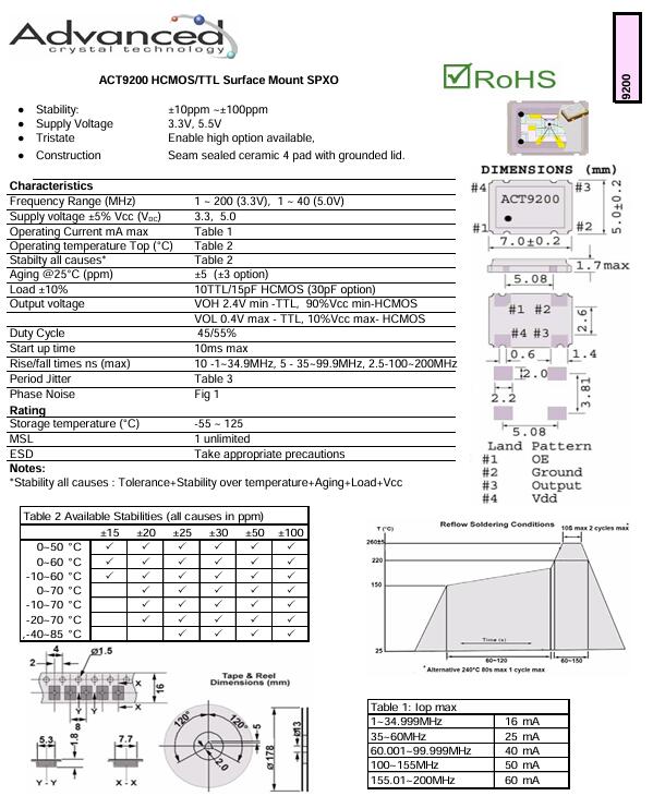 ACT9200 SPXO晶振,7050大尺寸晶振,電信設(shè)備石英晶體振蕩器