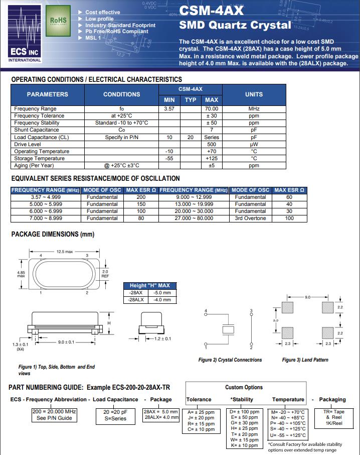 | ECS-40-20-28AX-TR | CSM-4AX | MHz Crystal | 4MHz |