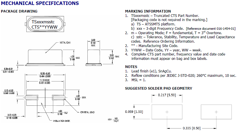 CTS晶振,石英晶振,ATS-ATSSMTS晶振,石英貼片晶振