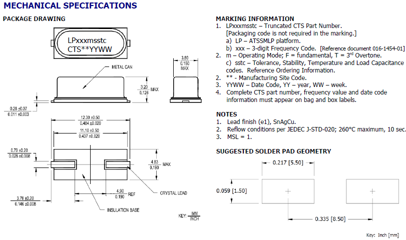 CTS晶振,貼片晶振,ATS-ATSSMLP晶振,石英水晶振子C化學(xué)制劑 / pH值環(huán)境:請勿在PH值范圍可能導(dǎo)致腐蝕或溶解石英晶振或包裝材料的環(huán)境下使用或儲藏這些產(chǎn)品。