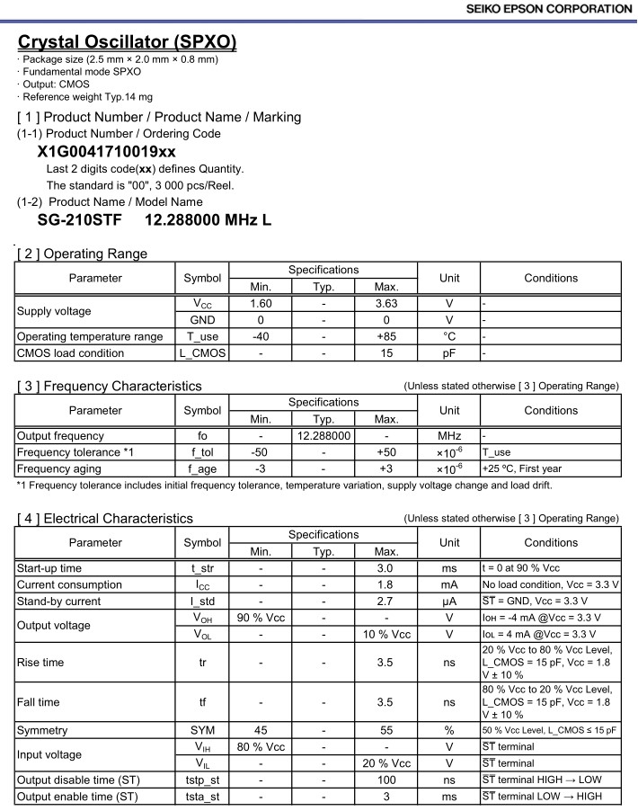 | X1G0041710226 | SG-210STF | 28.636300 MHz | 2.50 x 2.00 x 0.90 mm | CMOS | -40 to 85 °C | +/-50 ppm |