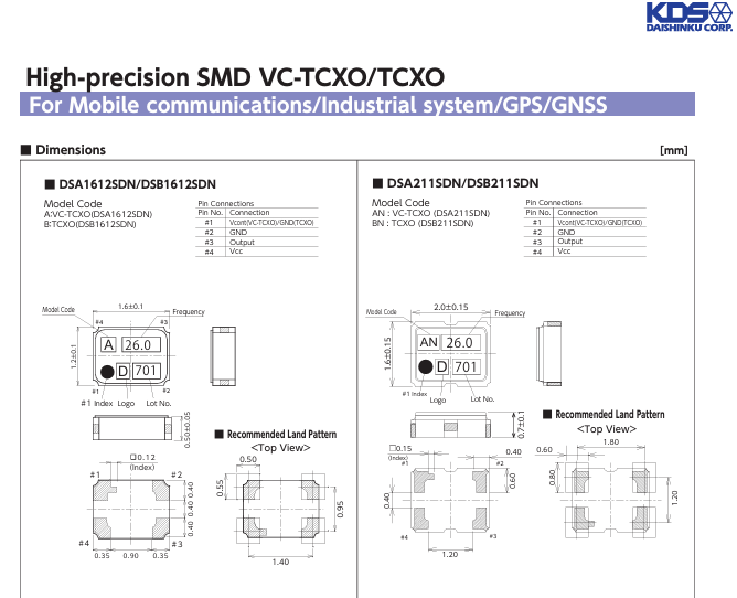 更多>>1XXD32000MBA DSB211SDN 32M日本大真空KDS溫補晶振