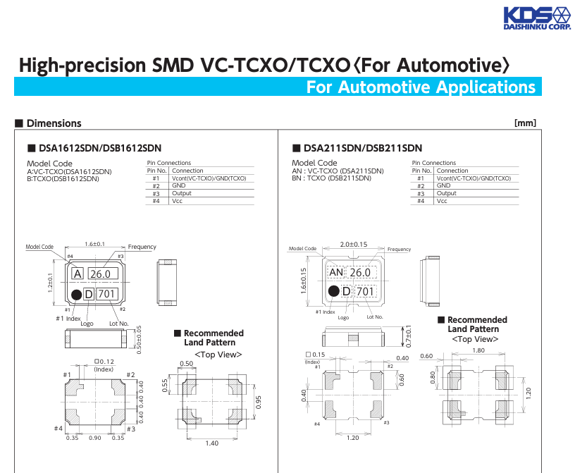 1XXH26000MCB溫補(bǔ)晶振,DSB1612SDN日本晶振,KDS大真空晶振聲表面諧振器