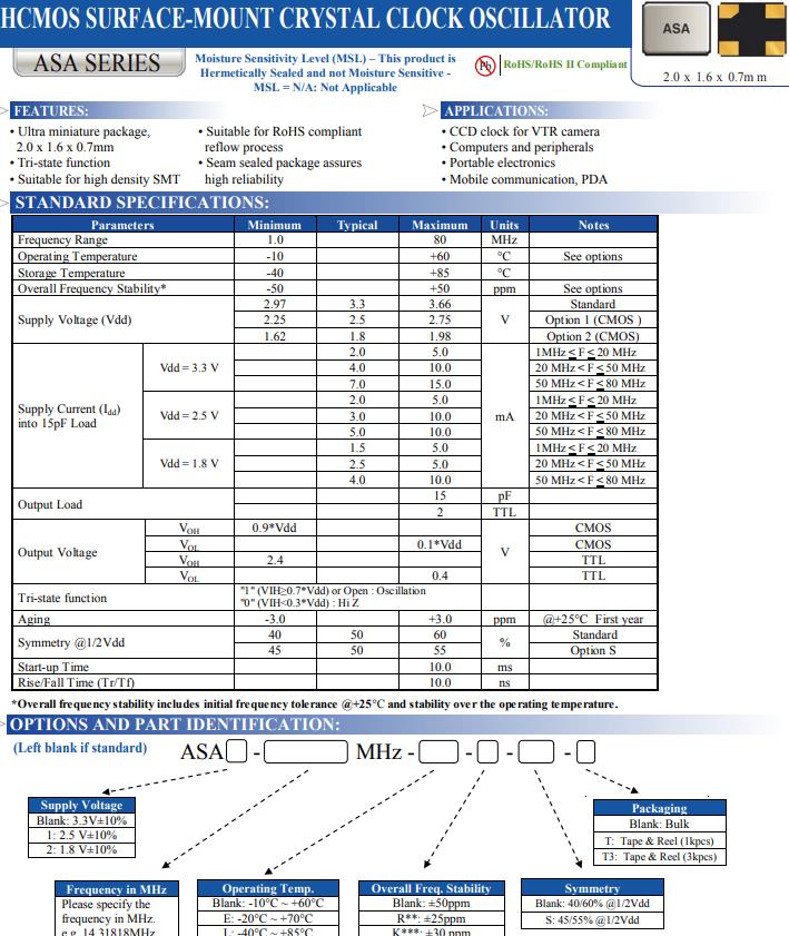 | ASA-16.000MHZ-L-T | Abracon晶振 | ASA | XO (Standard) | 16MHz | 3.3V | -40°C ~ 85°C |