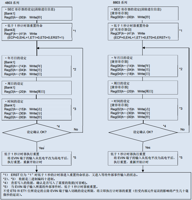 下文詳細說明使用上述兩種對時方法相關(guān)的寄存器,重置的動作及設(shè)定例.使用上述方法之前,務必先從外部輸入已同步的時間信息.
