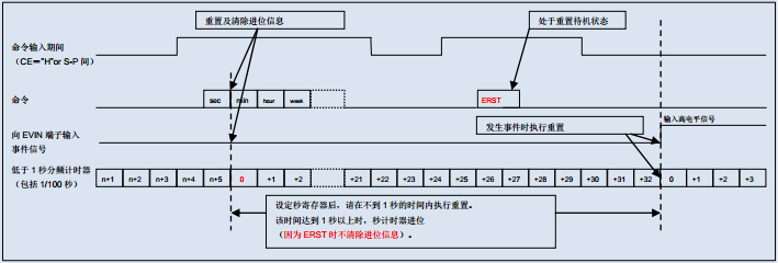 執(zhí)行ERST 時不清除進位信息,為此請在設(shè)定秒寄存器后不到 1 秒的時間內(nèi)重置低于1秒的計時器;