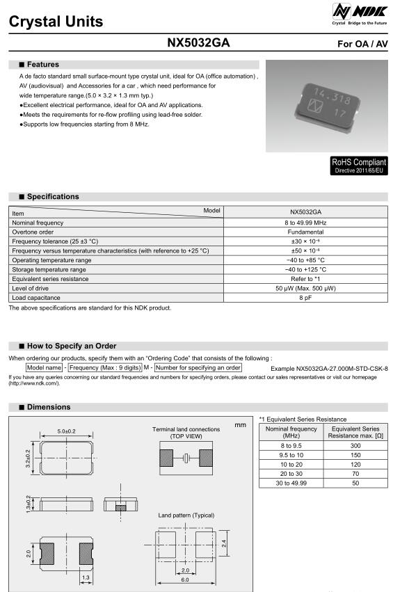| NX5032GA-16.000000MHZ-LN-CD-1 | NDK | CRYSTAL 16.0000MHZ 8PF SMD | ±50ppm | -10°C ~ 70°C | 2 | 5032 |