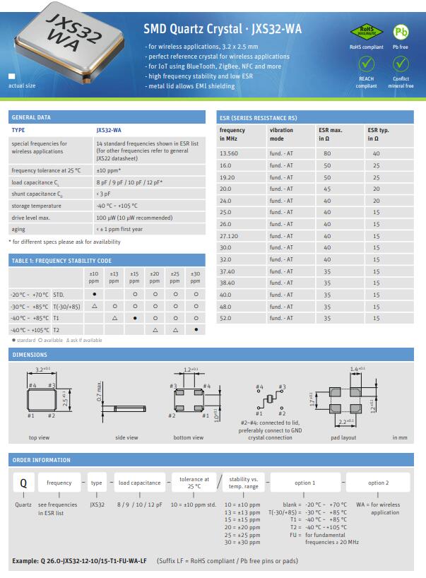 由于其高頻穩(wěn)定性和極低的ESR,這些特殊的JXS-WA晶體滿足了射頻收發(fā)器或物聯(lián)網(wǎng)應(yīng)用所必需的高要求.