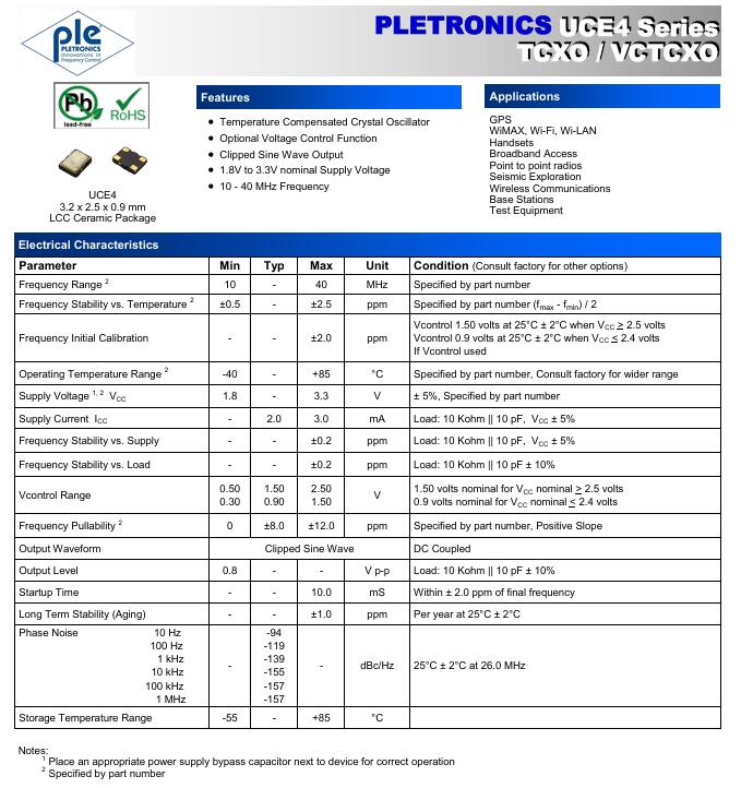 | UCE4031035LK005000-26MDK | Pletronics, Inc | TCXO OSCILLATORS 3225 4-SMD TCXO | 削峰正弦波 | 3.3V | 0.5ppm | -40°C ~ 85°C | 3225 | 3225 |