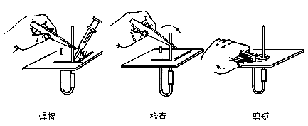 4)用鑷子轉動引線,確認不松動,然后可用偏口鉗剪去多余的引線.