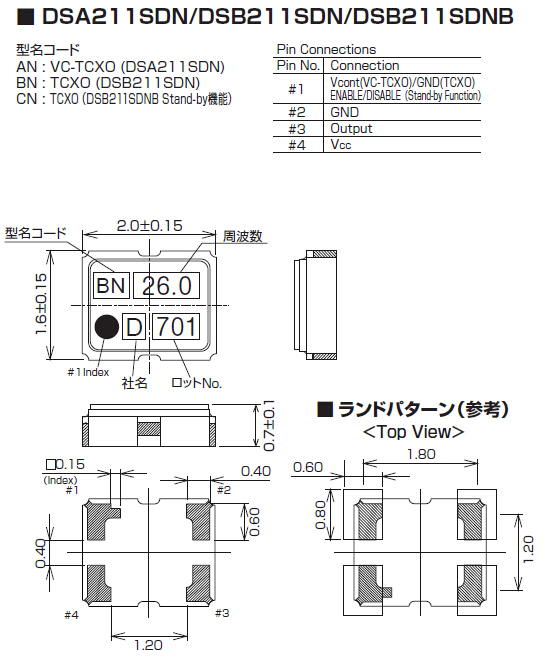 | 消費電流 | ?+1.5 mA max(. f≦26MHz)/ +2.0 mA max(. f>26MHz) |