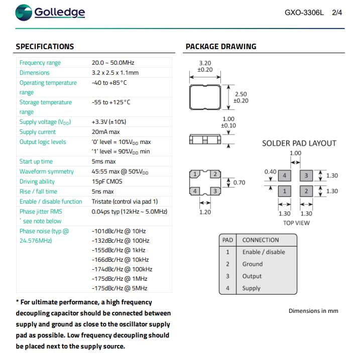 Golledge Electronics提供GXO-3306系列超低抖動振蕩器.這些振蕩器旨在提供卓越的信號完整性,確保在苛刻的環(huán)境中提供準(zhǔn)確可靠的性能.
